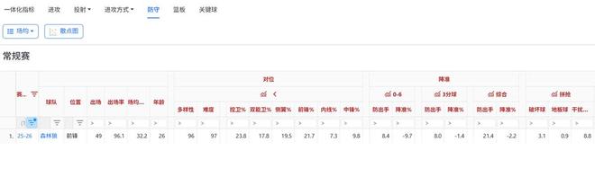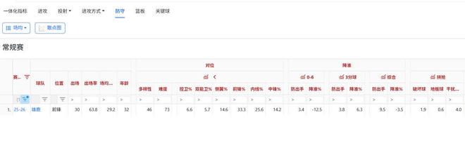 上圖是字母哥和麥丹的賽季防守情況對比,字母哥側重對位內線而麥丹更擅長防守后衛(wèi)??紤]到森林狼內線有戈貝爾,四號位還有蘭德爾。狼崽對內線防守人需求不大反而更缺乏外線領防人。